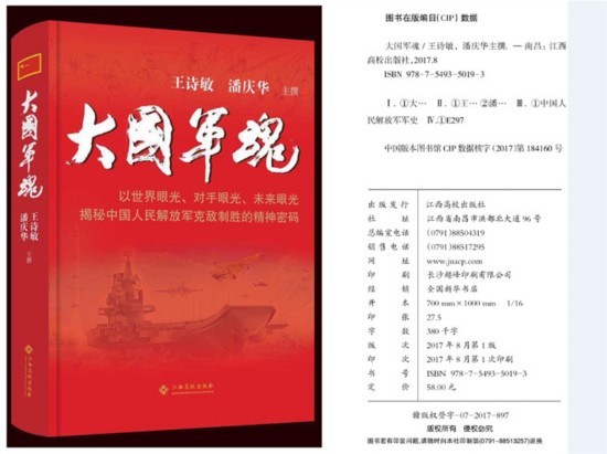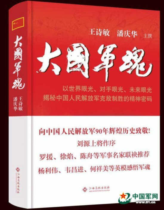 在建軍90周年之際,一部全景式展現解放軍由弱到強成長歷史的著作《大國軍魂》即將由江西高校出版社出版發行。這本38萬字的新書由軍隊青年理論工作者王詩敏、潘慶華主撰,盤點了在血火苦難中鑄就的巍巍軍魂,謳歌了震撼人心的軍旅英雄。