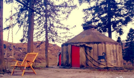 北漂那十年我很少回老家,很多記憶都已經模糊了。但專職寫作后,總是會夢見童年曾走過的地方,春節回老家祭祖,發現山里所有耕地都變成了草場。村里只有留守老人,年輕人都外出打工或搬家進城了。在草場中央的櫻桃湖邊分散著四個蒙古包,我想著要是能住在這里寫作就好了。一打聽才知道原來是我堂哥家在這里養魚呢,我找他商量給我一個蒙古包住著寫作。我堂哥是個真正的詩人,他不僅寫了很多詩,熱愛自由和探險的他更是把生活過成了詩。他聽說我在寫小說非常高興,當即就爽快答應了。
