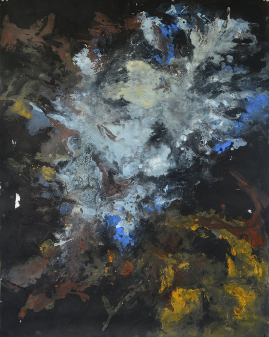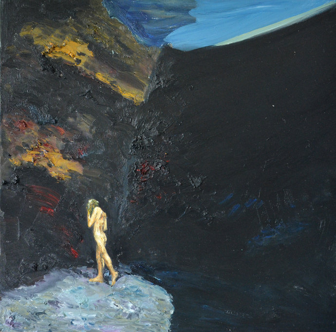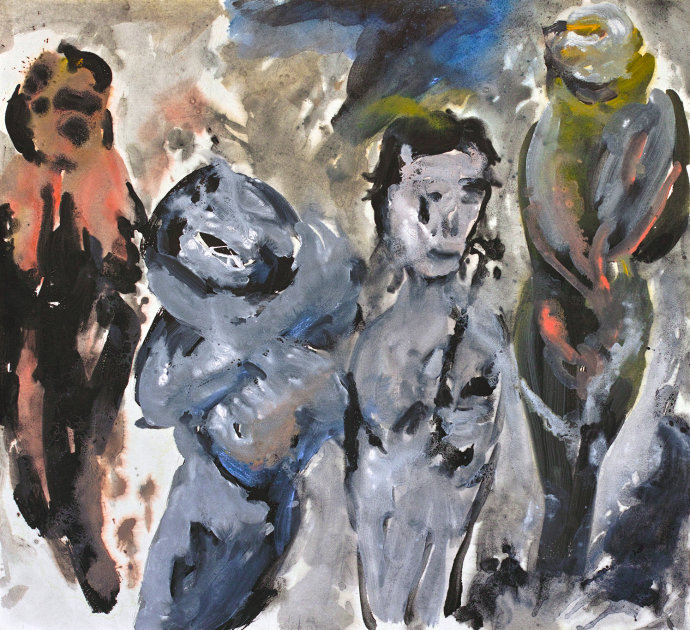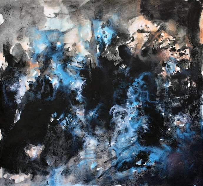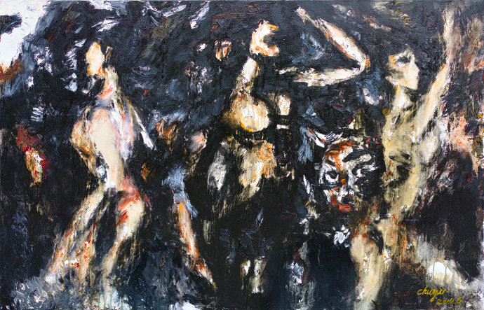 現在我們看到的楚雨繪畫大都類似“潑墨”,至于是不是潑墨我也不知道,為此,我和楚雨交流過幾次,我覺得還是應該畫得“像”一點比較有說服力。“不像”的話我這種沒有一點繪畫基礎的也能畫那叫人怎么服氣?每次楚雨都呵呵一笑做了解釋,大意藝術的抽象其實更難。此番約楚雨展示才藝我要求她給幾張寫實的,讓大家看看你是科班畢業的,寫實對你很簡單。結果楚雨才給了一張,就是這張《水墨倉庫。山中系列》(其實我看過楚雨的寫實畫),好在這個躶體野人線條比例很扎實,我們就窺一斑而知楚雨的基本功吧。