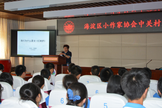 啟動儀式上,海淀區作協秘書長王威致辭,作協副主席李明新向中關村中學授予“海淀區小作家協會中關村中學基地”的牌匾。儀式結束后,作協副主席李明新為同學們講了作家進校園的第一課“我們為什么要讀《紅樓夢》”。對此,學校領導表達了愉悅的心情,并獲得了全體參會者的熱烈掌聲和贊許。