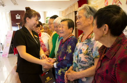 愛心企業“庫爾勒金三角商貿城天潤祥珠寶”為到場的十位耄耋老媽媽,表達了深深的敬意!