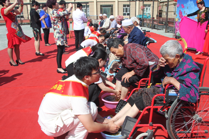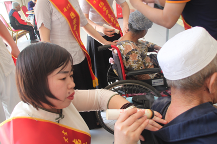 詩歌朗誦會結束了,會員們開始為托老中心的老人們泡腳、按摩,做艾灸。