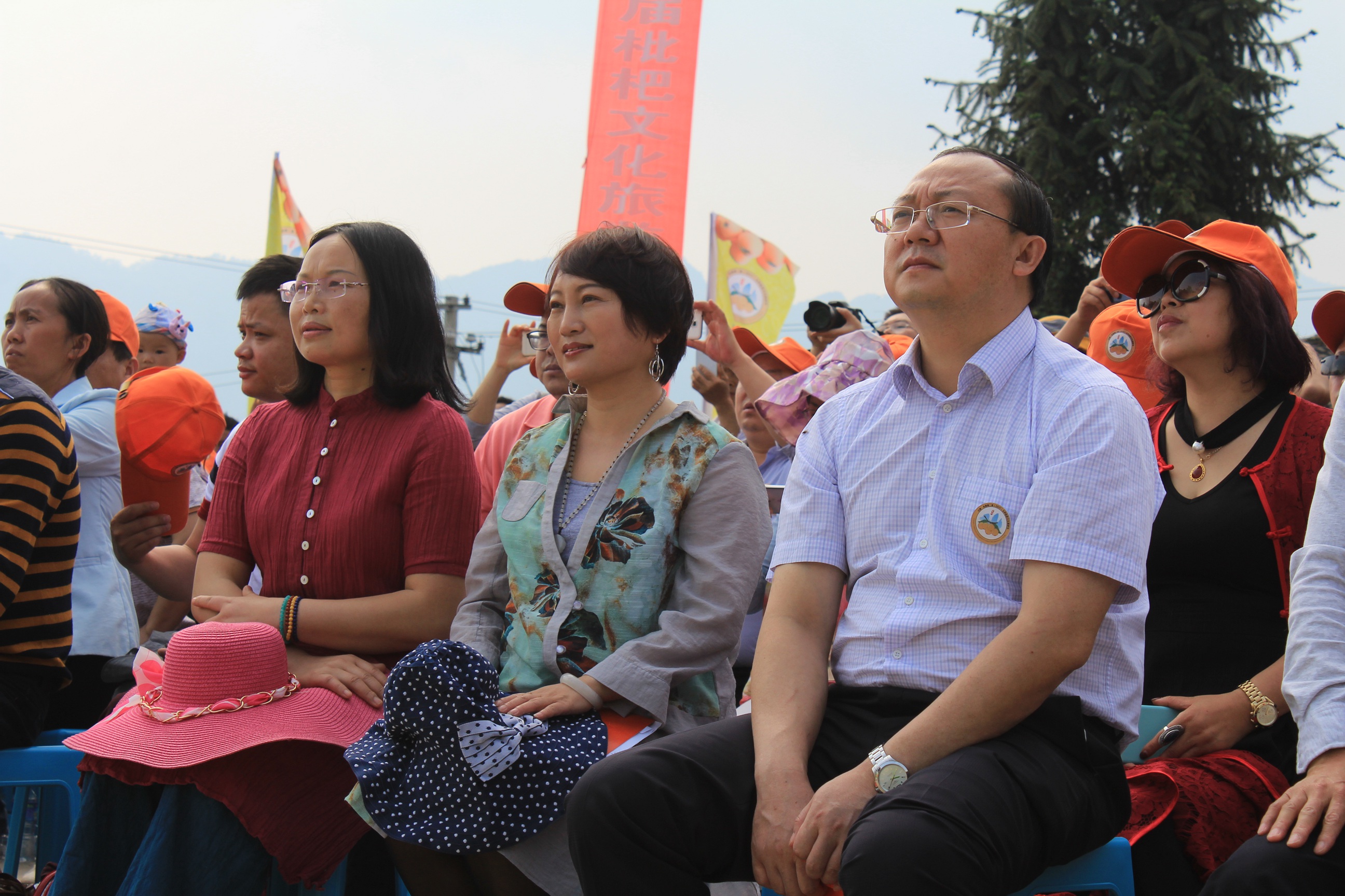 武眉凌(中)與永善縣委常委、宣傳部長劉洪蕓(左一),縣委常委、副縣長王勇(右一)一起觀看枇杷節開幕式