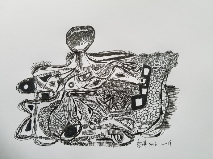 我理解她說的每次完成一幅畫作,都有想大哭一場的感覺,渾身顫抖的感覺,無法入睡的感覺……因為那是線條經畫者之手,最終形成一幅畫,成為生命個體。仿佛最初的一筆就是一個受精的卵子,由畫家勾畫,完成了生長。完成的那一刻就是胎兒成熟呱呱墜地,從此真正開啟塵世之旅的時刻。如此,說畫家是在用線條生長了存在于畫紙的生命,真的不為過。這生命已經不再區分人、動物還是植物,哪怕是石頭。