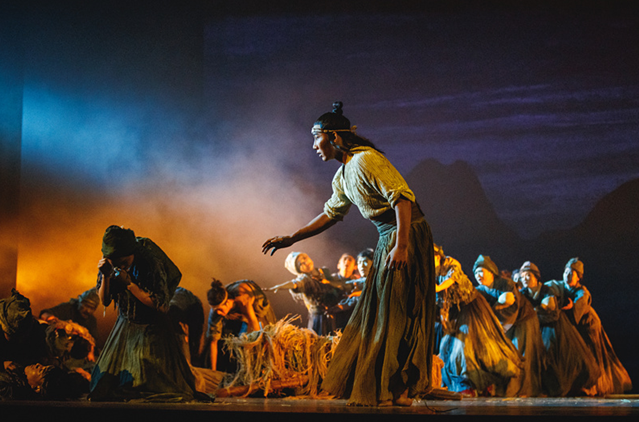 大禹這個人物本身就是介于傳說和在人們的幻化中留存的,并且故事取樣發生在4000多年前,有限的史料記載也不完全統一,甚至有些支離破碎,但基調治水和主線人物已經框定,那么如何創作出合情合理可信的故事情節和人物關系,主創人員就需要付出極大的智慧足夠的耐心去架構和梳理這些人物關系。創作者需要運用各種手段使之能夠產生矛盾沖突和擁有戲劇性,這對于舞劇這種藝術表現形式來說,會具有一定的難度。而該劇把大禹這個與天斗與地斗的人物創作出新的鮮活形象,成為了中國舞劇史上一個新的突破。