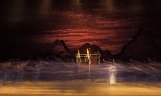 程遠是一個很有創造力的音樂人,他創作的舞劇《紅高粱》的音樂年代的代入感和舞劇人物的統一性都很強,一個好的音樂對于舞劇的重要性不言而喻。尤其對于舞劇《大禹》這樣的歷史題材來說,如何通過音樂將觀眾帶回到4000多年前那段蠻荒的歷史場景,讓觀眾身臨其境的體驗到大禹所面對的困難和內心的抉擇這是一個機會更是一個挑戰。程遠一如既往的懷揣誠意,他帶來的音樂吟唱著愛,吟唱著緣,更帶著堅毅和不屈,他幻化的大禹像一位云游在紅塵中卻又遺世獨立的詩人,在世間紛亂的阡陌上孑然而行,吟唱這世上一切最美好的感受。