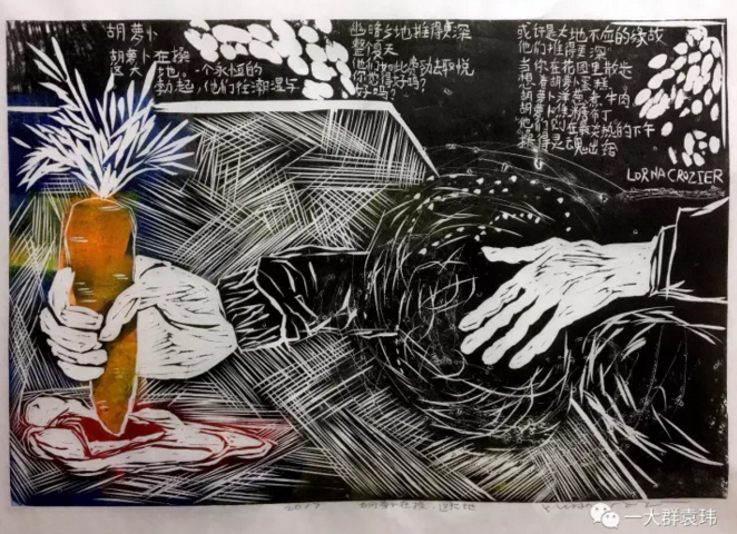 《胡蘿卜在操,這大地》應本屆香港國際詩歌節邀請,我挑選了一首加拿大詩人LORNA CROZIER的詩,畫了一張,刻了一張,但都不是很滿意,11月再畫幾張。