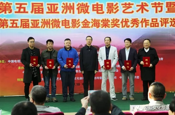 中國電視藝術家協會主席、原中央電視臺臺長胡占凡向亞洲微電影藝術節“金海棠獎”評委頒發評委證書