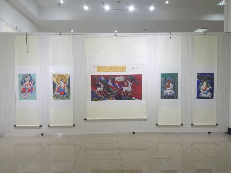 中國國家畫院教學中心學術主持馬嘯表示,“萬殊一相 • 李政恩書畫篆刻作品展”展場寬敞,布展講究。“在這里,無論是工整精致的鐵線小篆、古雅端莊的小楷、風姿綽約的菩薩造像,還是粗獷質樸的金文大篆、氣勢開闊的行草書、滄桑斑剝敦煌壁畫臨摹品,抑或是清曠恬淡的水墨山水、清麗鮮亮的重彩畫……‘萬殊’就代表他這些藝術創作面目的多樣性,但更重要的是‘一相’。藝術是跟人心靈相通的東西,每一個藝術家最后都要走向‘一’,而不是走向‘多’。這個‘一’,就是自己的內心深處,這是個深不見底的精神谷底。”