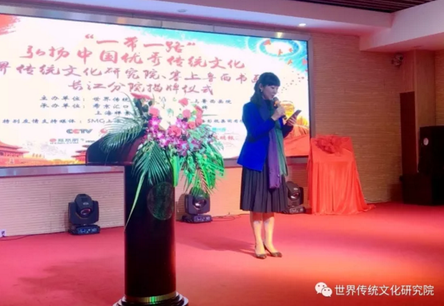 世界傳統(tǒng)文化研究院及塞上魯西書畫院長江分院執(zhí)行院長、上海希京匯企業(yè)咨詢有限公司董事長趙靜女士致辭