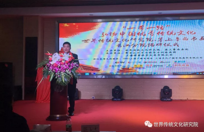 今天很高興參加世界傳統(tǒng)文化研究院、賽上魯西書畫院長江分院的揭牌儀式!首先向該研究院長江分院表示熱烈的祝賀!