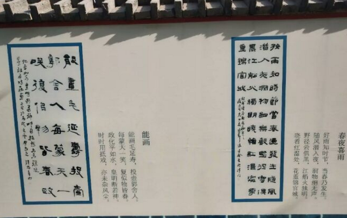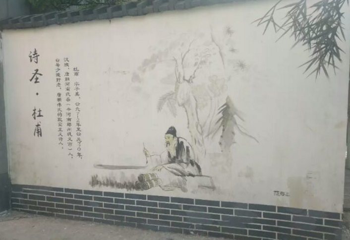 在鞏義市重要交通路段的廣告牌、宣傳欄、健教欄、候車亭、燈桿道旗、LED屏幕都安裝了各類“杜甫詩詞大會”的戶外宣傳展示;益民街上400米長的墻上一幅幅生動的杜甫詩詞手繪畫, 600多平方米的手繪,常莊道路兩側100多米長的手繪墻;鋪滿了從錦里路、英才路一直到嵩山路的600米的u型墻上各種字體的杜詩書法形態各異;育英街上一個個精美的展板既有杜甫詩詞,還有釋解詩詞內容的水墨畫與街道上的房子、竹子等景觀融為一體,渾然天成的意境營造其間;30多塊長2米多寬1.5米的展板整齊掛在孝義路北段300米的墻上,為“杜甫詩詞大會”烘托了氣氛,讓行人潛移默化中了解杜甫、了解杜詩,感受作為杜甫故鄉人的精神內在。