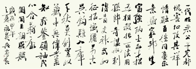 當(dāng)我看到吳震啟(無(wú)為)先生《通心堂萬(wàn)米詩(shī)墨手卷》時(shí),非常激動(dòng),浮想聯(lián)翩。我為承德出了這樣一位詩(shī)書(shū)人才感到驕傲,我為中華民族有一位自學(xué)成材的農(nóng)民兒子感到自豪。因?yàn)椋以跓o(wú)為的出生地和工作過(guò)的隆化縣和承德地區(qū)主管過(guò)文教領(lǐng)導(dǎo)工作,那時(shí),他已是自學(xué)成材的青年詩(shī)人和書(shū)法家,對(duì)他艱苦成材的過(guò)程有所了解。我調(diào)北京工作后,得知無(wú)為在京治療,在看望中了解到,他正在病床上改定詩(shī)稿、進(jìn)行萬(wàn)米詩(shī)墨長(zhǎng)卷的創(chuàng)作構(gòu)思。出院后,他不顧病痛的折磨,不顧生活中的種種磨難,身居陋室,奮進(jìn)搏擊,終于1993年5月完成了這一生命投入的藝術(shù)力作。