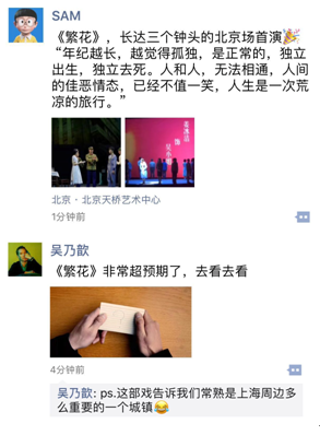 還有讀者給劇組以書信的方式留言:“《繁花》以其豐富性和開放性深深感染了我,表面上是‘花花世界,鴛鴦蝴蝶’,其實每個人都離不開大時代的洗禮,無意義的背后,是真正的有意義。金先生曾就舞臺劇北上會“水土不服”而感到擔憂,熟不知,上海味道真令每一位觀眾喜愛。