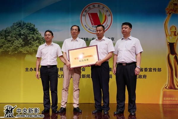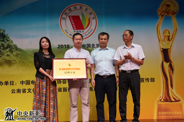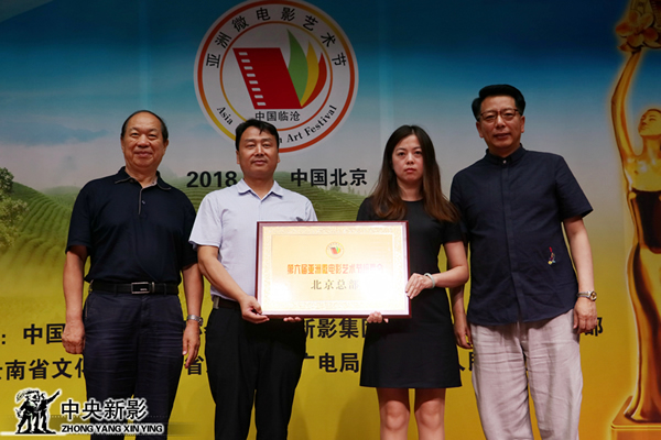 亞洲微電影藝術節評委會副主席牛亮、曹劍頒發亞洲微電影藝術節組委會臨滄本部銅牌,臨滄市駐昆辦副主任柏紹龍、臨滄市文產辦主任張云祥接牌;亞洲微電影藝術節評委會評委范子文、梁世杰頒發亞洲微電影藝術節組委會昆明分部銅牌,中央新影藝術團副團長、云南省微電影協會常務副會長王國歡,評委代表、知名編劇劉冬梅接牌;組委會副主席董萬章、評委代表張宏頒發亞洲微電影藝術節組委會北京總部銅牌。中國視協微視頻(微電影)委員會副秘書長裴月華、中央新影集團微電影發展中心副主任許峰接牌。