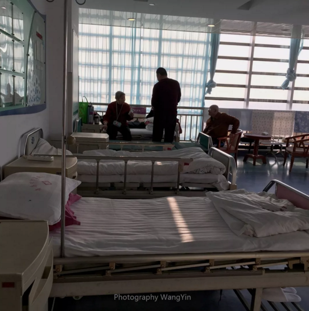 就從那時(shí)起,我主動把鏡頭對準(zhǔn)了醫(yī)院,因?yàn)檫@與我有關(guān)。從每次體檢到每次住院我都拍照,就像平常一樣,拍醫(yī)院就如同拍平常的其他。這么一拍,一下子就拍到了眼下。除了自己住院的經(jīng)歷外,先父生前住院期間,女兒住院、侄子住院等都自然而然地去拍,當(dāng)然也包括我眼前的那些不認(rèn)識或?qū)⒁J(rèn)識的病友和家屬。