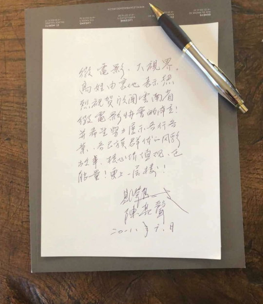 衷心感謝著名表演藝術家斯琴高娃老師和著名音樂家陳亮聲教授,今天凌晨從國外專程發來的賀信,表達藝術家對微電影的關心支持!