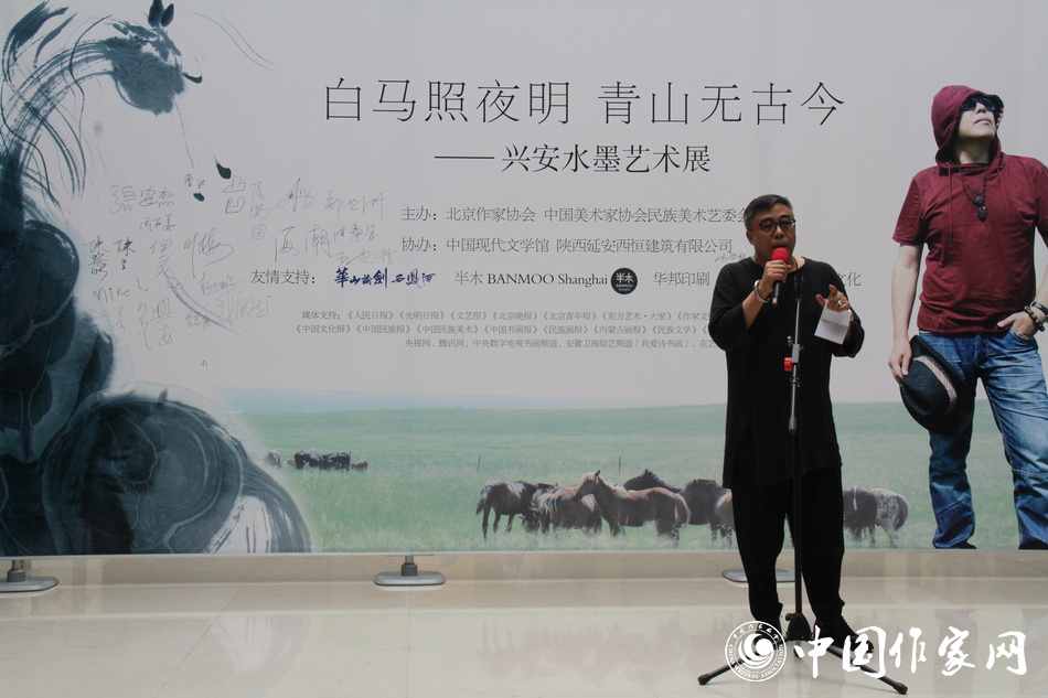 7月22日,“白馬照夜明·青山無古今 ”,作家、畫家興安水墨藝術展在中國現代文學館開幕。