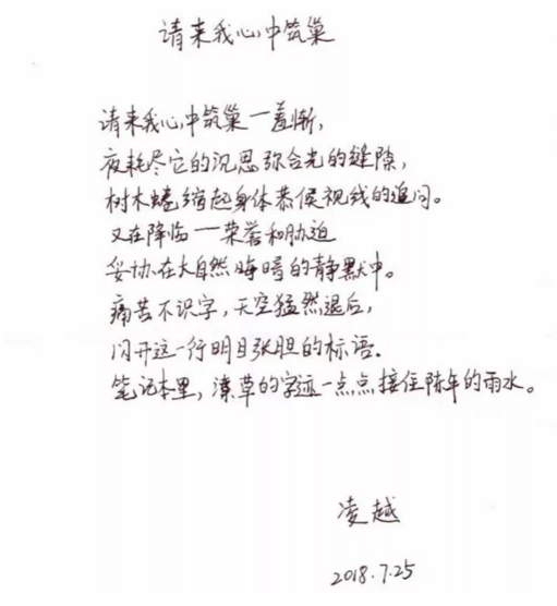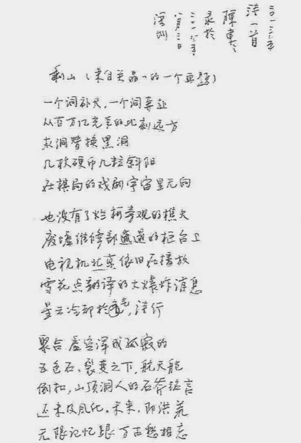 詩人肖像和詩人手稿是觀看詩人是“這一個”的最佳方式方法。看肖像,真正的詩人面對事物總是保持一顆卑微之心,反應在面部的表情就是羞澀,記住”羞澀”二字就好;看手稿,或認真,或恭敬,或張揚,或拘謹……不一而足,通過手稿可看出一個詩人的性情。