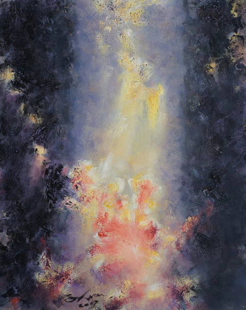 除了去年我在北京組織的藝術家外,此次展覽,祝鳳鳴還新組織了一些重要藝術家,他們是中央美院教授、知名油畫家洪凌先生,曾留學德國、現生活在合肥的優秀藝術家楊重光先生、陳宇飛先生,還有在宋莊生活的知名藝術家、詩人、策展人吳震寰先生,他們紛紛拿出了自己滿意的詩意油畫力作。在此,我也一并感謝他們。