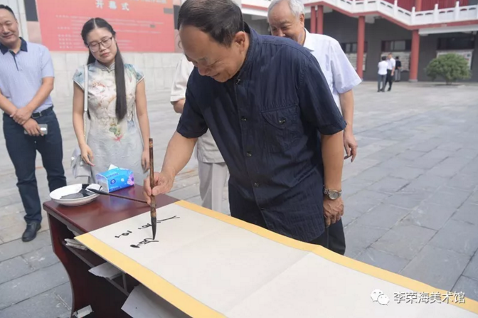 原中國作家協會黨組副書記王巨才,中國文學藝術界聯合會原黨組成員、書記處書記、副主席夏潮,原公安部消防局政委、全國公安書法家協會主席謝模乾,中央外事辦公室原副主任、中國公共外交協會原副會長、中國前駐尼日利亞、瑞典大使、外交部外交政策咨詢委員會成員呂鳳鼎,中國書法家協會分黨組副書記、秘書長鄭曉華等領導和關仁山,李優良,趙智,崔陟等文藝界專家學者,劉曉明,孟繁韶,陳良兵,吳淑芬,尹兆龍,張玉林,龐聰,王恩惠,游居龍,楊陽,李瑛等相關負責人,山東省人大常委會原副主任時立軍,中國書法家協會理事、山東省書法家協會常務副主席兼秘書長孟鴻聲,菏澤市人民政府黨組成員魯志成,菏澤學院副院長黃濟民,牡丹區人大主任李書京,菏澤市文學藝術界聯合會主席史長華,菏澤市財政支付中心副主任何茂兵,菏澤學院美術與設計學院書記李傳峰,菏澤學院美術與設計學院院長周倩,菏澤市消防支隊政委尤勝,菏澤市李榮海美術館名譽館長李榮海,山東省書法家協會副主席,菏澤市書法家協會主席曹鈺,首批中國書畫藝術之鄉——安徽省蕭縣政協委員會主席楊洪軍,副主席張艷、祖佰永、曹紅、鄭玉錦,蕭縣政協書畫院秘書長孫志凌,各大媒體的記者和觀眾共同出席了此次活動。