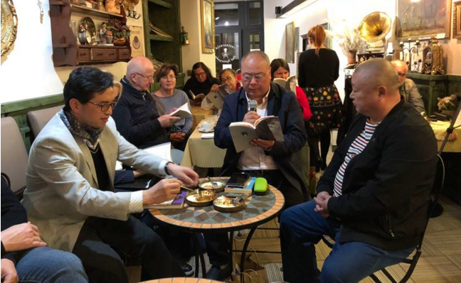 雙方詩人輪流朗誦了自己的作品。所有聽眾提前拿到了中英文雙語版(中國詩歌代表團六人詩選),