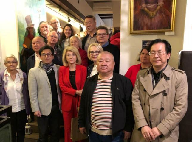 北塔說,今晚這次是歷史上首屆波蘭-中國詩歌文化雙邊交流會,意義非凡。這間餐廳雖然不大,但因為是畫家開辦的,所以無論是墻壁上懸掛的畫作,架子上陳列的藝術品還是內飾風格,都充滿了濃郁的藝術氣息,感謝女主人薇奧萊塔女士提供如此溫馨精致的場所。感謝北阿塔女士的總協調,感謝克麗絲蒂娜女士的牽線。