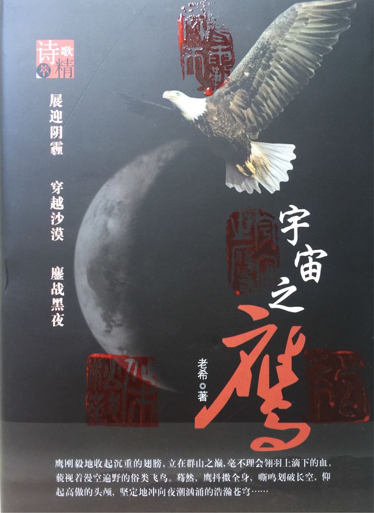 "從蒼茫的山脈飛出一只鷹/展迎陰霾/穿越沙漠/鏖戰黑夜/眼眸閃現利劍一樣的光芒/以風蕭蕭易水寒的悲壯遠離/去追尋夢想……鷹高瞻遠矚/開始積聚超越夢想的力量/十年磨一劍/已磨出了王者之劍霸氣之劍/能砍斷一切纏繞筋骨的鎖鏈/向宇宙沖刺/沖刺 沖刺/無論再涌過來多少磐石/都會被神鷹一樣的力量擊碎/看啊/不遠的將來/茫茫宇宙里疾飛著一只王者之鷹……"
