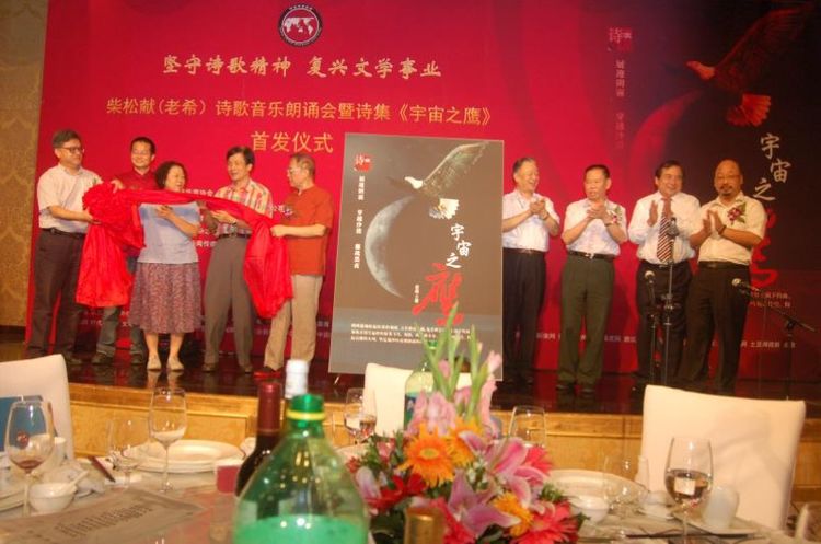 2012年7月,作家出版社出版了他的詩歌珍藏版《宇宙之鷹》,并在北京財富公館舉行了大型詩歌音樂朗誦會,被業界譽為"開啟了中國現當代詩人開創個人詩歌音樂朗誦會的歷史"。著名詩人、中國詩歌學會原會長雷抒雁在朗誦會上致辭:"有了夢想誰都了不起,老希(柴松獻筆名)從農村到大都市,他的腳印是詩行,也是標點,他用詩歌的翅膀飛翔,生活是大海,詩歌則是老希出海的船,也是他遠行的帆。""柴先生給蓬頭垢面的詩歌以榮譽、以尊嚴,讓她精神煥發,讓她流光溢彩,了不起!"