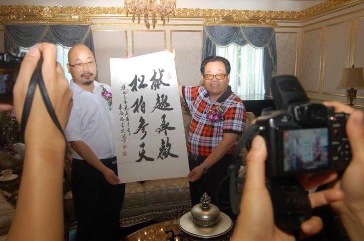 柴松獻和中央文史館館員、中國作協原書記處書記、中國作家出版集團黨委書記兼黨委會主任張勝友留念