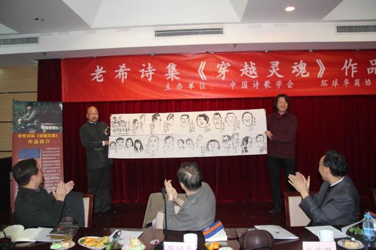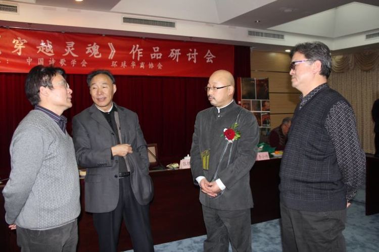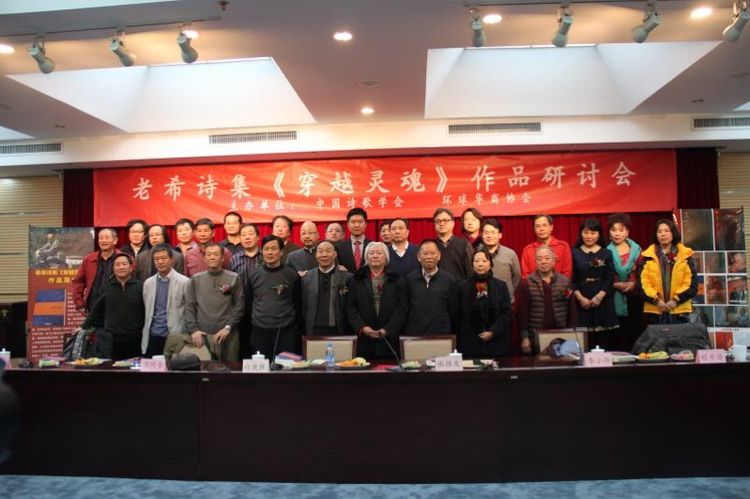 柴松獻詩集《穿越靈魂》研討會在中國作協會議廳舉行,中國作協書記處書記白庚勝(現任全國政協常委、中國作協副主席),中國作協原書記處書記、中國作家出版集團黨委書記兼管委會主任張勝友,中國詩歌學會名譽會長張同吾(已故),副會長兼秘書長李小雨(已故),副會長曾凡華、程步濤以及創研部主任粱鴻鷹(現文藝報總編輯),《中國作家》常務副主編楊匡滿,《詩刊》評論組組長朱先樹等中國作協各部門詩歌專家、學者、評論家集體留念
