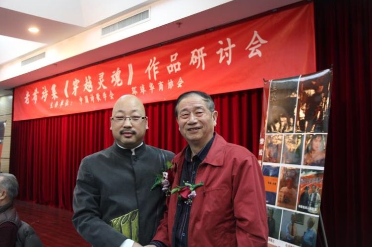 這次沒有拜望李瑛讓柴松獻有些許遺憾。"不過2012年冬我出版第五本詩集《穿越靈魂》時見到了他老人家,"柴松獻道:"當時李老86歲高齡了,精神狀態依舊很好,他還給我的這本詩集親自題寫了書名,并題詞詩歌是詩人的生命激勵我。"