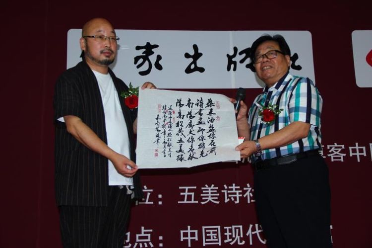 柴松獻和中國詩歌學會副會長兼秘書長李小雨留念