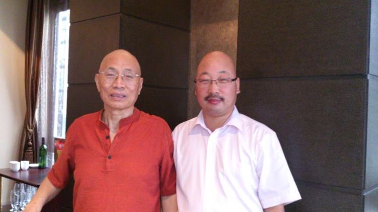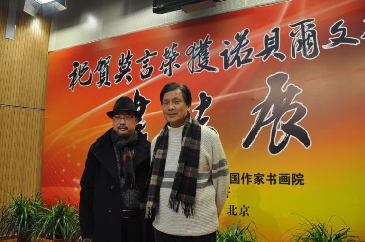 柴松獻和首屆魯迅文學獎獲得者、中國作家雜志原常務副主編楊匡滿出席中國作協舉行的慶賀莫言獲得諾貝爾文學獎活動時留念