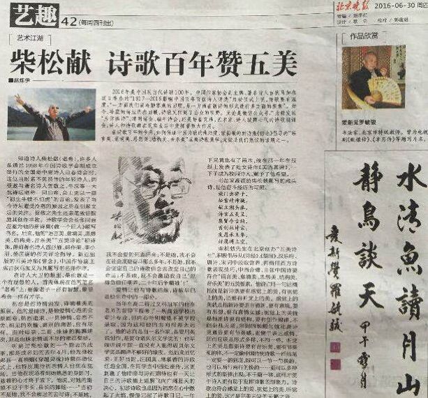 由博客中國等組織承辦的"1917--2016影響中國百年百位詩人評選"結果揭曉,經過半年的精心籌備,4個多月的線上網絡評選和線下專家投票,胡適、郭沫若、艾青、徐志摩等中國老一輩重要詩人進入"影響中國百年詩人百強"。評選活動中,當代詩壇一批新人脫穎而出,榮膺"百位新銳詩人"稱號,中國當代詩人、"五美詩歌"倡導者柴松獻排名榜首。
