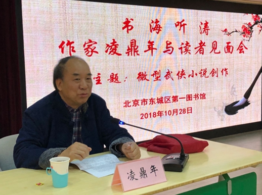 10月28日下午,世界華文微型小說研究會秘書長凌鼎年應邀去北京東城區圖書館講課,這是他第四次到北京東城區圖書館講課。主講《武俠微型小說的創作》。并與現場的讀者進行了互動,回答了多位讀者的提問。