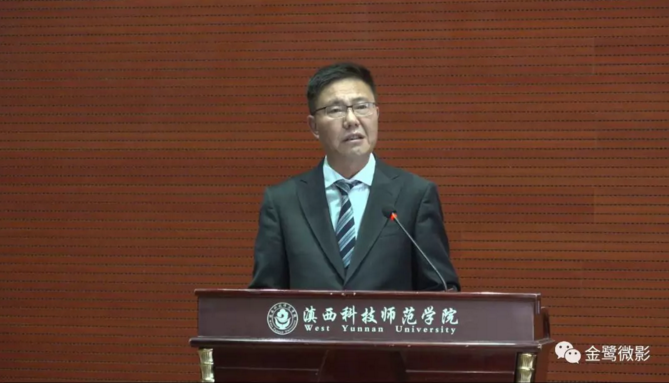 西科技師范學(xué)院校長、亞洲微電影學(xué)院執(zhí)行院長、博士生導(dǎo)師王德強(qiáng)教授首先致辭,王德強(qiáng)校長對一直以來關(guān)心滇西科技師范學(xué)院發(fā)展的各級領(lǐng)導(dǎo)、專家、藝術(shù)家表示感謝。他講到,四十年來,滇西科技師范學(xué)院秉承“立德修身,篤學(xué)尚行”的校訓(xùn),堅守立德與樹人相長、科技與人文交融的辦學(xué)理念,不斷彰顯“地方性、應(yīng)用性、開放性”的辦學(xué)特色。王校長還向嘉賓介紹了學(xué)校三年來在科研方面取得的成果:獲批國家民委民族理論政策研究基地、中國特色民族團(tuán)結(jié)進(jìn)步事業(yè)(省級)智庫、云南省首批省級博士后科研工作站;獲批省部級科研項目21項,其中國家社科基金重大招標(biāo)項目1項;2018年,國家社科基金立項6項,其中重點項目1項,全國綜合排名第211位,列云南省高校第5位;出版“中國特色民族團(tuán)結(jié)進(jìn)步事業(yè)叢書”,在國內(nèi)外產(chǎn)生了較大反響。成立了“新時代中國特色民族團(tuán)結(jié)進(jìn)步事業(yè)研究中心”“人類命運(yùn)共同體研究中心”“一帶一路研究院”“國際佤文化研究院”“滇西高原生態(tài)特色農(nóng)業(yè)研究院”等多個研究機(jī)構(gòu),主動將學(xué)校的發(fā)展融入和服務(wù)國家發(fā)展戰(zhàn)略、服務(wù)邊疆地區(qū)經(jīng)濟(jì)社會發(fā)展,與國家的改革發(fā)展和邊疆經(jīng)濟(jì)社會發(fā)展同頻共振。