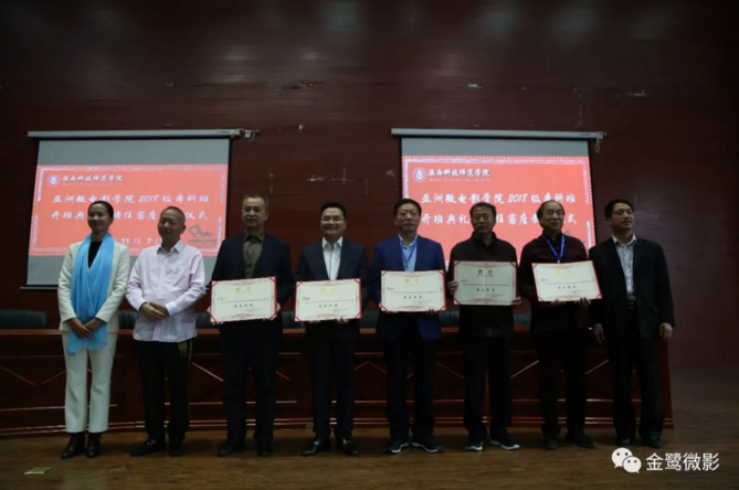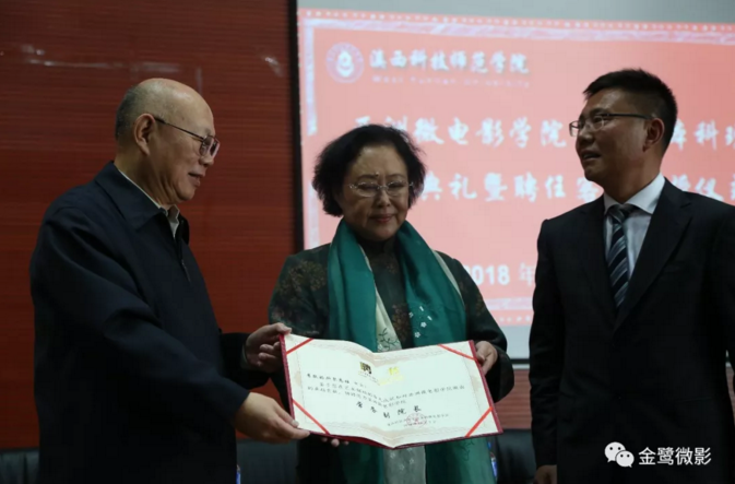 聘任客座教授儀式上,滇西科技師范學(xué)院校長王德強(qiáng)和中國國際廣播電臺原臺長李丹為著名表演藝術(shù)家斯琴高娃老師頒發(fā)滇西科技師范學(xué)院亞洲微電影學(xué)院常務(wù)副院長聘書;王德強(qiáng)校長和斯琴高娃為中央新影集團(tuán)副總裁趙捷頒發(fā)亞洲微電影學(xué)院副院長聘書,為中國電視劇制作中心原主任李培森頒發(fā)客座教授聘書;中國視協(xié)分黨組成員、副秘書長高健,中央新影集團(tuán)副總裁趙捷,中央新影集團(tuán)微電影發(fā)展中心主任鄭子和亞洲微電影學(xué)院副院長童紹英為范子文、李偉健、曹慧民、殷云、陳宏、溫永東、王鑄、劉玉龍、尹成奎、凌鼎年、田水泉、齊為民、周永忠、宋道勝、范曉偉頒發(fā)客座教授聘書。