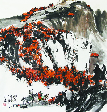 在創(chuàng)作中,劉岸有意識地從文學(xué)性和抒情性兩個(gè)方面向文人畫靠攏。所謂抒情性,就是注重心靈表現(xiàn),首先表現(xiàn)在選材的隨意性上。他隨心所欲,有時(shí)畫人物,有時(shí)畫花鳥,有時(shí)又畫山水。興致所至,無所不為。抒情性還表現(xiàn)在重筆墨的變化。劉岸堅(jiān)信中國畫是“寫”出來的。他主張筆墨為上,色彩次之。由于他的畫見筆見墨,所以總能給觀者留下“血統(tǒng)純正”、筆精墨妙的記憶。