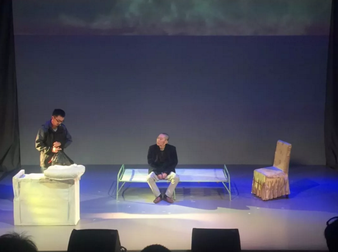 在下半場的時候,我們的困勁已過,話劇也似乎過了枯燥節(jié)點,我們開始被韓東帶著走了。