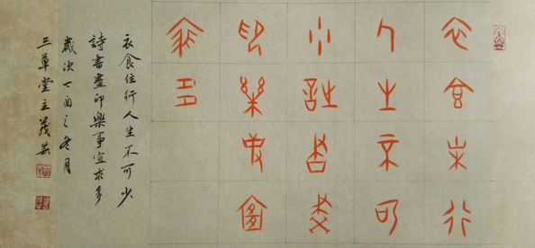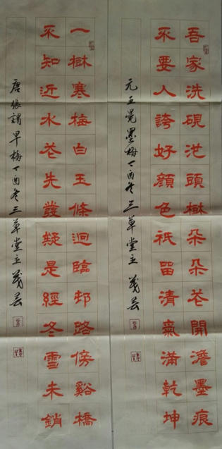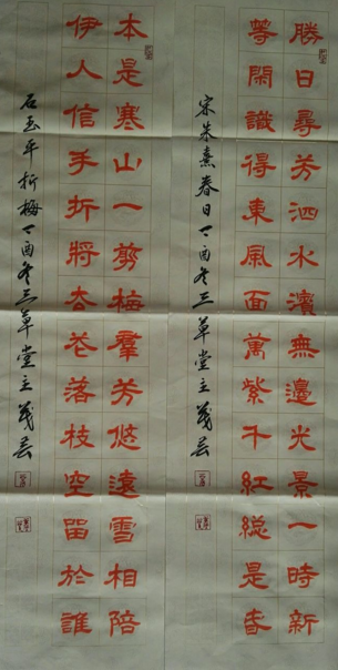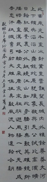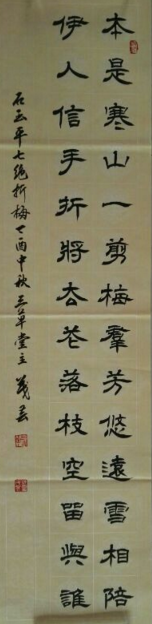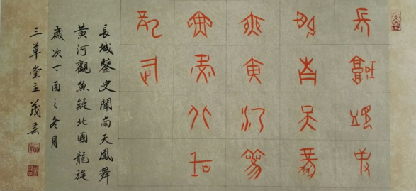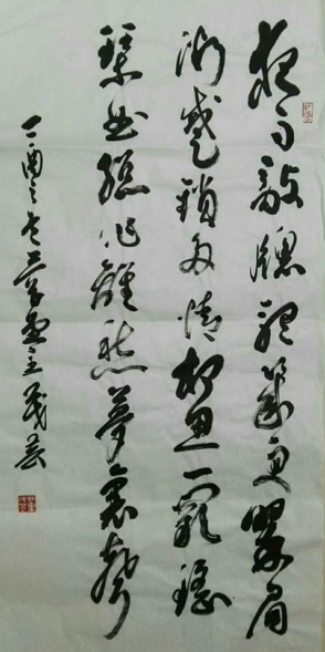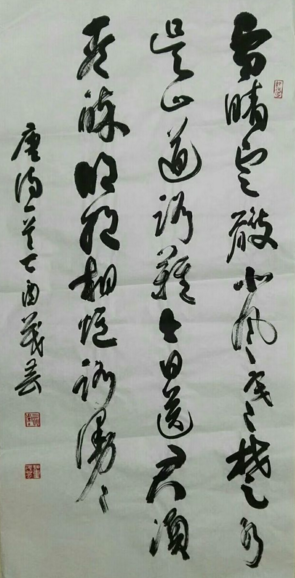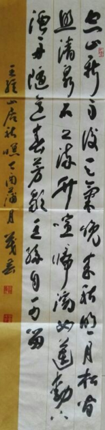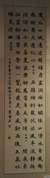 董茂蕓,號三草堂主,內(nèi)蒙古清水河縣人,現(xiàn)供職內(nèi)蒙古財經(jīng)大學(xué),內(nèi)蒙古書法家協(xié)會會員。 自幼喜歡書法,小學(xué)始習(xí)字,五十多年來,未曾間斷。八十年代中期就讀天津茂林書法學(xué)院,師從陳云君、顧志新、沈震寰諸師。九十年代調(diào)入呼和浩特后,受到康莊、滑國璋、王乃欣等塞上名家的指導(dǎo),虛心求教,轉(zhuǎn)益多師。楷習(xí)趙、歐,行宗米、王;隸以《曹全》、《張遷》為本,草以王鐸、傅山為師;工作之余心摹手追、勤于臨習(xí)。汲古融今,博采眾家之長;守正創(chuàng)新,漸成自家之貌。時雄強(qiáng)肅穆;時恣肆靈動;人書雙修,日臻佳境。
