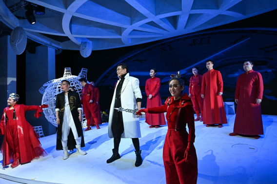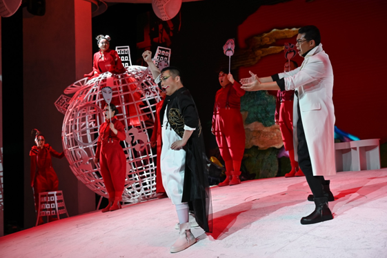 值得一提的是,藝術家們的生動演繹也成為首演之夜的一大亮點。飾演成年沒頭腦的國家大劇院駐院歌劇演員王海濤,以收放自如的表演成功塑造了沒頭腦馬馬虎虎的形象;國家大劇院合唱團團員梁羽豐則將壞脾氣的不高興演繹地栩栩如生;青年女高音郭飛以華麗的花腔技巧展現出鬧鐘聰明伶俐的形象;而歌唱家胡越、程文慧的反串飾演,則將童年沒頭腦和童年不高興的稚嫩頑皮展現得淋漓盡致。與此同時,國家大劇院合唱團的八位團員也以古靈精怪的表現,給觀眾留下了深刻印象。