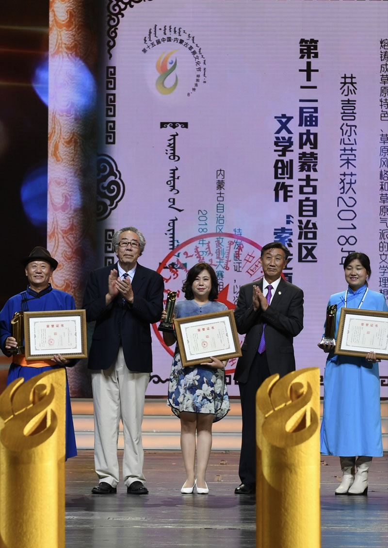 2018年草原文化節“草原詩畫”朗誦會朗誦著名詩人安謐的詩歌《陰山巖畫》向文學前輩致敬。