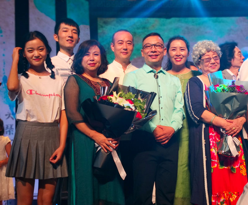 第二屆詩歌春晚與女兒朗誦自己的作品《請跟我來》