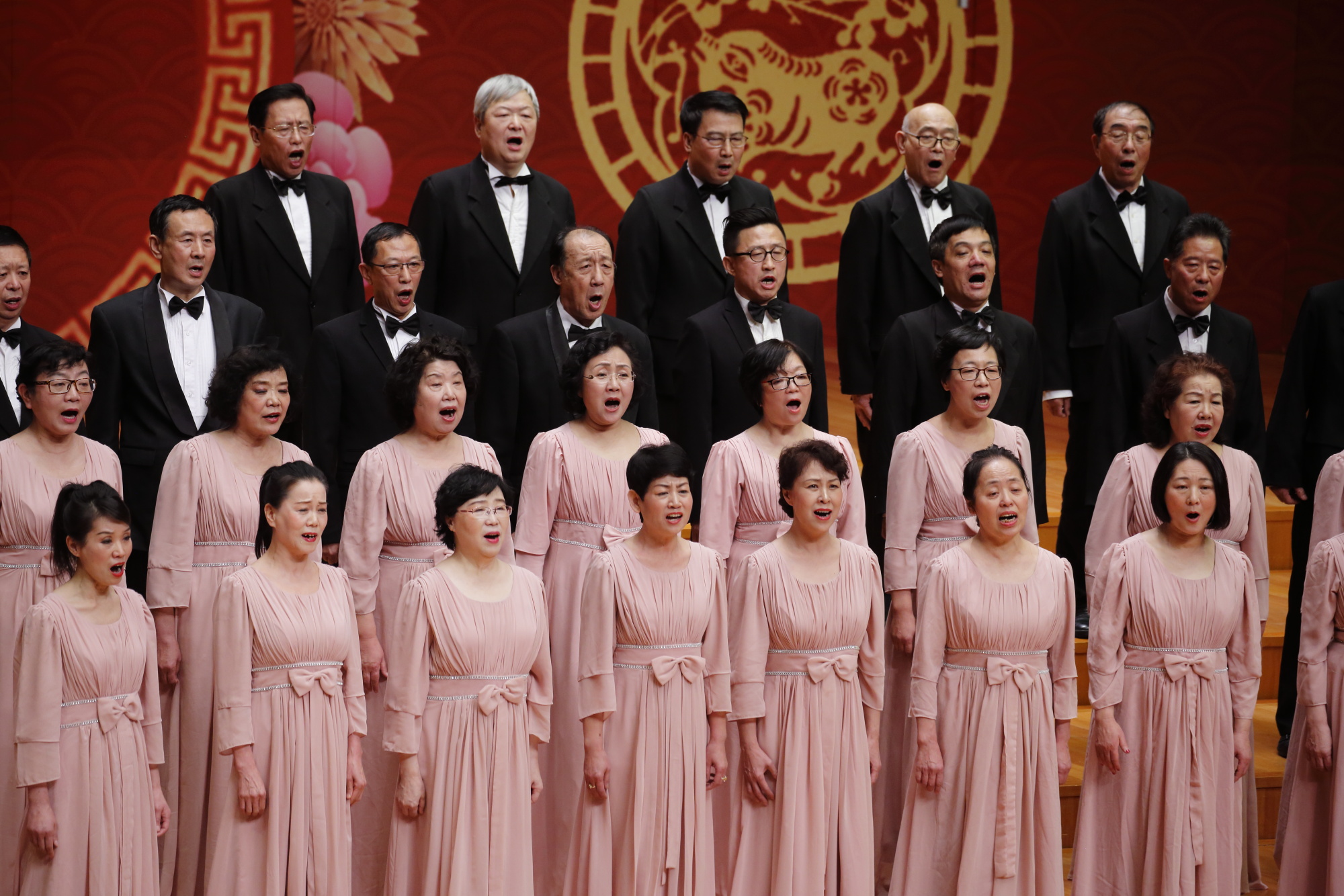“勤勞勇敢的中國人,意氣風發走進新時代……繼往開來的領路人,帶領我們走進那新時代,高舉旗幟開創未來……”在300人的大合唱《走進新時代》中,現場氣氛被推向第一個高潮。這是市民新春聯歡會8年來規模最大的一次,由六個市民合唱團共同演繹,情緒飽滿,整齊劃一,唱出了催人奮進的磅礴氣勢。