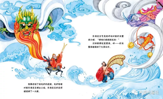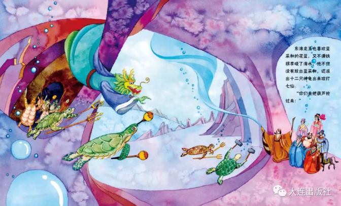 所以,盡管龍王龍?zhí)用婺开b獰,蝦兵蟹將神龜丑陋不堪,更有那巨浪滔天令爭斗情勢顯得緊迫,但和諧一直是繪本所著意追求的。