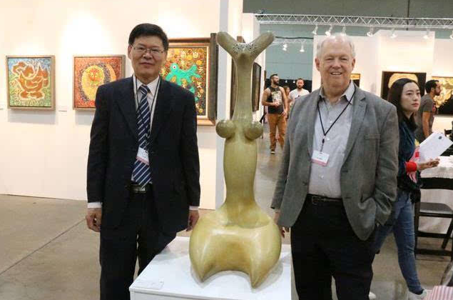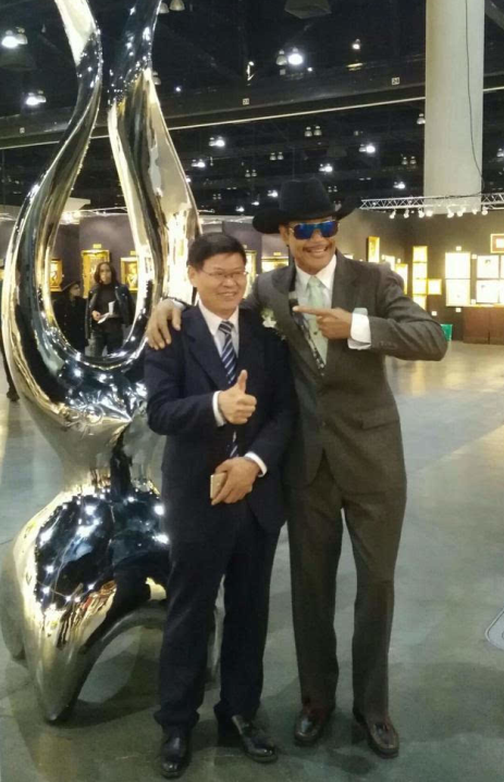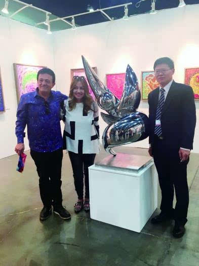 美籍伊朗裔房地產商邁爾夫婦6.5萬美元收藏當代藝術家劉以林(右)雕塑《中國武術》