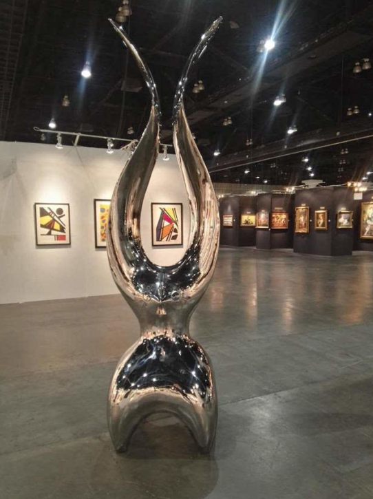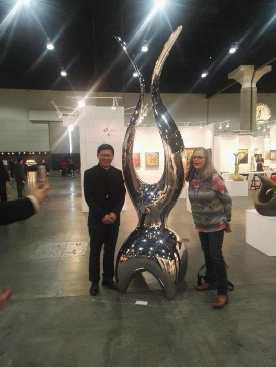 《蘋果日報》報道索價35萬美元的不銹鋼雕塑,為第23屆洛杉磯藝博會中國展區內最貴藝術品,就是劉以林先生恩恩雕塑作品《知天者》。
