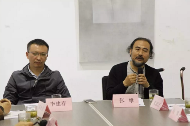 4月13日下午,虞山當代美術(shù)館內(nèi),由張維、李建春策展的“轉(zhuǎn)換:從新文人畫到新人文畫一一董欣賓、卞雪松、朱建忠、楊鍵四人展”學術(shù)研討會召開。來自國內(nèi)業(yè)界的陳孝信、敬文東、王東東等著名藝術(shù)批評家、學者、詩人、書畫家們展開了熱烈討論,梳理了從新文人畫到新人文畫的學術(shù)脈絡(luò)以及四位畫家的風格、藝術(shù)流變中的地位等。來自國內(nèi)的顧凱軍(藝術(shù)評論)、劉潔岷(詩人、評論家)、李國華(學者、北京大學中文系副教授)、聶廣友(詩人、評論家)、程一身(詩人、譯者)、施施然(詩人、畫家)、雨田(詩人)、周玉峰(南師大美院教授,書畫家)、姜戈平(書畫家)、朱建忠(畫家)、楊鍵(詩人、畫家)等參加了會議并發(fā)言。