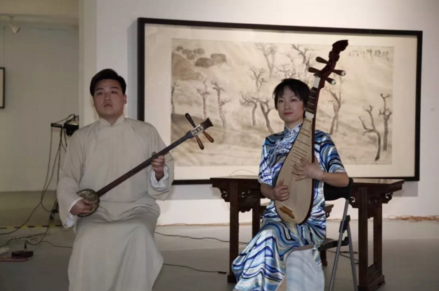 當晚七時許,虞山當代美術(shù)館內(nèi)的“韻·動——第九屆虞山雅集”為活動掀起高潮。蘇州市級非物質(zhì)文化虞山派古琴藝術(shù)代表性傳承人陳尉華奏出“清微淡遠、博大和平”的虞山琴派正聲;民謠歌手王娟、饒遠娓娓歌唱,或音如天籟清流或熱烈、奇趣,使與會嘉賓們沉醉流連;來自國內(nèi)與邑中的文朋詩友們歡聚一堂,朗誦他們最新、最好的詩歌,歌韻飛揚,悸動心聲……詩人們的朗誦也為活動賦予了高貴、雅望的氣息。邵柳青、金怡晨的評彈 《蘇州好風光》《戰(zhàn)長沙》又使人倏然回歸古典之境,流連忘歸。